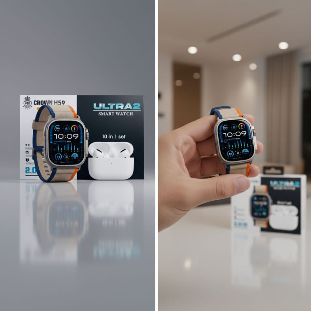 This Crown H59 Ultra 2 + AirPods Pro 2 bundle gives you the best of both worlds—smart fitness tracking and premium audio performance. With its sleek design, advanced features, and unbeatable value, this combo is the perfect upgrade for your everyday life.